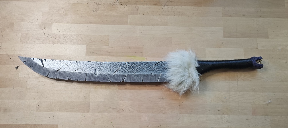 Please take note that the template doesn't show the fabric wrapped around the handle nor the battle damage and it only shows the global area where you need to add the fur.