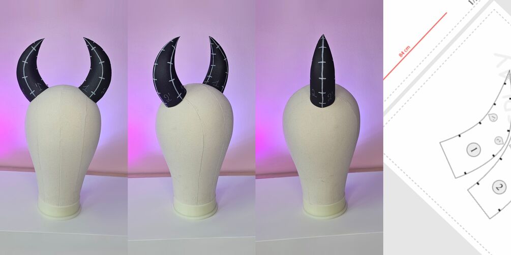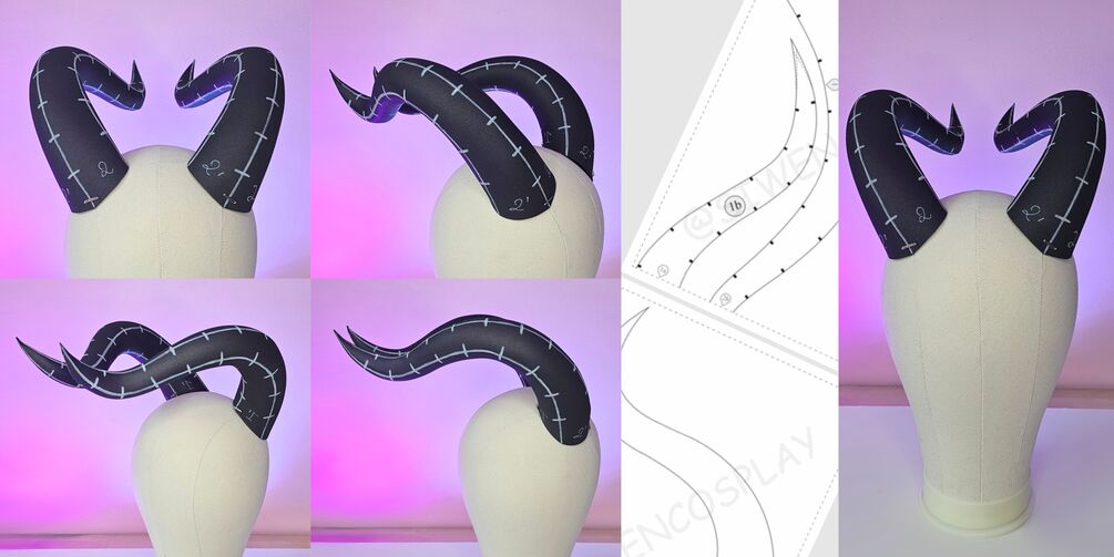 The horns need a bit of heat shaping to be fully round. You can use the same patterns but do 45° cuts instead of 90° ones to get the same horn shape but with a "square" effect instead of the "round" one you can see on the ones I made.