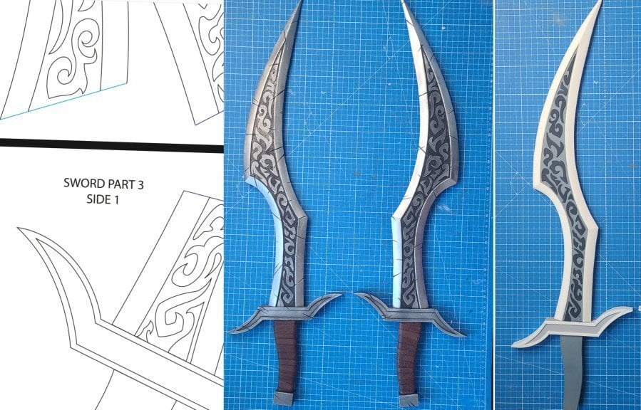 pdf pattern of the sword ( 1 full pattern and 1 ready to print already separated )